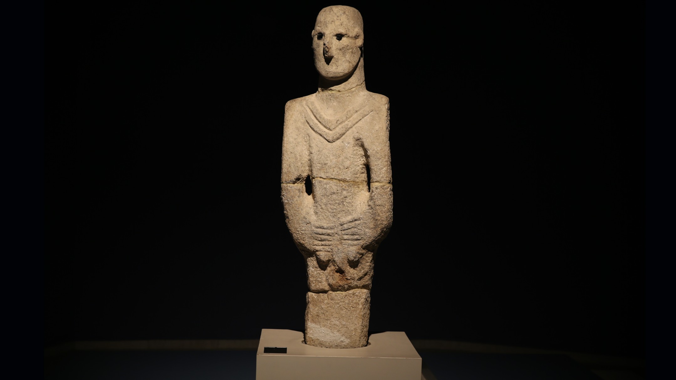 «Человек из Урфы» был случайно обнаружен в районе Балыклыгёль. Черты статуи поразительны: глубокие глазницы, заполненные обсидианом, сломанный нос и, что примечательно, отсутствие рта. V-образная маркировка на шее предполагает наличие ожерелья, но в остальном фигура полностью обнажена. Его руки, сложенные перед ним, явно демонстрируют его гениталии, а вместо ног у скульптуры имеется U-образное основание, вероятно, предназначенное для встраивания в стену или нишу.